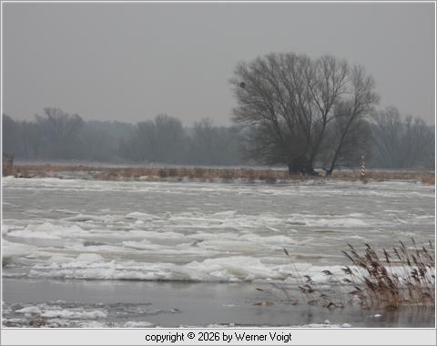 Eisekalt Die letzten Frosttage haben die Oder mit einer Eisdecke überzogen. Eisschollen haben sich übereinander geschoben und stauen das Wasser etwas. Dadurch kommt es auf beiden Seiten des Stroms zu leichten Überschwemmungen. Weil das Wasser auf den überschwemmten Wiesen steht, bildet sich dort schnell eine Eisdecke. |
