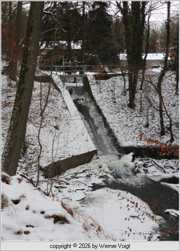 Alles fließt Im Sommer zeigt sich der Breddiner Wasserfall häufig sehr sparsam. Aber jetzt macht er unterm Eis seinem Namen Ehre. Das Königsfließ liefert genug Wasser nach. |