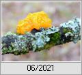 Goldgelber Zitterling (Tremella mesenterica) An einem offensichtlich abgestorbenen Zweig erregte ein kräftig leuchtender Fleck meine Aufmerksamkeit. Bei näherer Betrachtung ist es höchstwahrscheinlich ein Goldgelber Zitterling. Dieser Pilz ist weltweit verbreitet. Der Pilz ist eßbar, aber hat nur einen faden Geschmack. Durch seine leicht ins Orange gehende auffällige Färbung ist er jedenfalls ein Hingucker. |