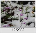 letzter Schnee In den ersten Märztagen gab es noch etwas Schnee. Diese zart wirkenden Blüten gehören dem Vorfrühlings-Alpenveilchen (Cyclamen coum). Ein Farbtupfer im Weiß. In der Laubschicht unter der Hainbuche wurde im Verlauf einiger Jahre aus einer Einzelpflanze eine kleine Gruppe. Der Standort passt also. |