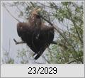 Weißstorch (Ciconia ciconia) In Großthiemig fanden wir mitten im Ort ein Storchennest in der Krone eines Baumes. Ungewöhnlich an dem Nest ist, dass keine Nisthilfe zu erkennen war. Das war im April und die beiden Weißstörche (Ciconia ciconia) waren wohl noch mit der Instandsetzung des Nestes nach ihrer Rückkehr beschäftigt. |