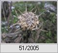 Mariendistel (Silybum marianum) Der abgetrocknete Blütenstand dieser von Nordafrika über Südeuropa bis nach Westasien verbreiteten Pflanze hat auch noch seinen Reiz. Eigentlich wird dieser Korbblütler wegen der schönen Zeichnung der Blätter bei uns in Gärten gezogen. Früher wurden die Samen in der Volksheilkunde genutzt. |