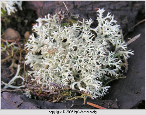 Alles falsch. Das ist kein Moos. Diese Pflanze ist eine Flechte, also ein Organismus, bei dem ein Pilz und eine Alge in Symbiose gemeinsam zum beiderseitigen Nutzen leben.